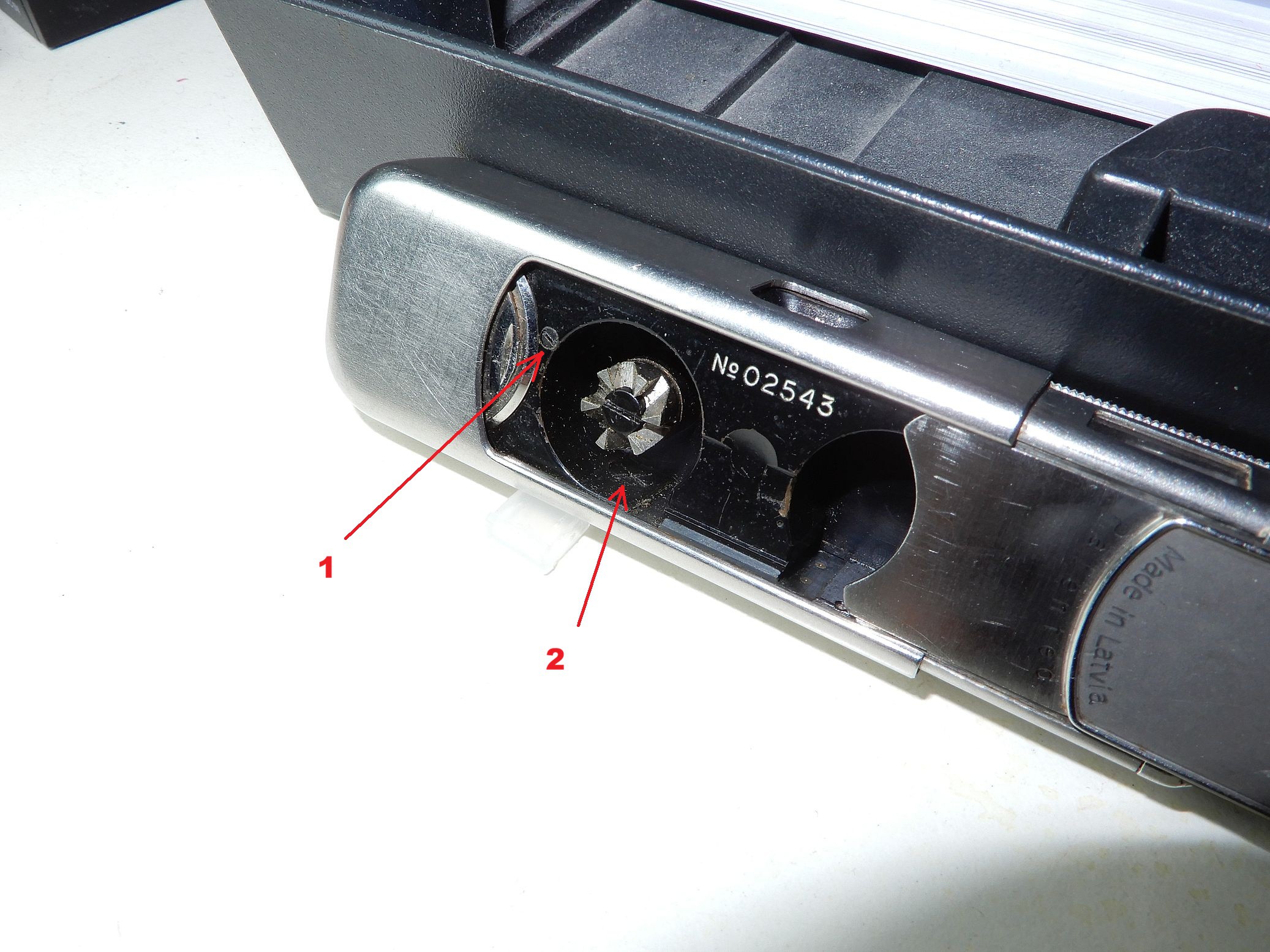 The problem I’m having — Mr. Fenner didn’t mention it because his Riga seems to be arrived to him disassembled — is that I’m somewhat unsure about the initial “opening” sequence because the two screws in the film compartment (picture “MinRig”) seem to be in different positions than those illustrated for the Minox “Germany” cameras like the “A” model of the other picture.